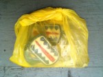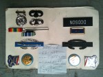 SMARMY; 2003; what remains of 3 years 1 month of active military service and 5 years inactive military service (minus a Russian bayonet, a Saudi Arabian Pepsi, various photographs, and a file folder of various records)…a pair of worn size 10N jungle boots, e-tool, a 1/2 dozen used faded stained bleached holy no-longer-brown undershirts (the red on the shirt is not blood, it is just a paint stain), 2 ropes, 1 carabeener, 550 cord, marker ink, CVCC bag – contents: outside pocket “Dodson” side – blue rubberband, 3 OD bungee cords, 1 OD drive-on rag, 2 jungle camo bandanas, 2 desert handkerchiefs, plastic bag – safety pin with unit patch (197th INF BDE) and 2 E-4 sew-on rank, ODgreen wallet, DIY-engraved “hooah coin”, 1 set of I.D. (dog) tags, 1 unit patch, wings, name tag, equipment receipt DA FORM 3749 for a mask (chem, bio, M171A1), an empty plastic bag whose contents were loaned to another soldier and never returned with label that reads: 8455-00-257-3870 DECORATION FOURRAGERE UNIT; DECORATION, FOURRAGERE; FRANCE; WWII 4 CITATION AWARD; GREEN AND YELLOW RAYON CORD; POLISHED BRASS FERRULE AND RING 1 EA. DLA 100-89-C-4039 01, blue infantry cord, paperboard with what was worn on dress uniform (name tag, unit crest 2 ea., U. S. & infantry lapel pins, CIB, parachutist badge/wings, rifle badge, ASR, AAM?, pin w/2 oak leaf clusters? blue post-it note that reads: missing = GDCMDL, UNIT AFFILIATION, FINAL AWARD, NATIONAL DEFENSE, SW ASIA (SSG Culp borrowed and never returned red and green cord (French Fourragere))…outside pocket – tape residue side – 1 shoelace, 2 rope, pace count cord, elastic helmet band, shoe shine kit (with brush LARGE, plastic bag with toothbrush, 2 SMALL polish applicator brushes, 2 polish cans), broken zip-lock plastic bag (with brass belt buckle, E-4 “dress” rank M (1 of 4 clips), small spool blue thread, 2 clips to clip to LBE belt, 9 name tags (4 used), 2 used U.S. Army tags, 1 “dress” name tag pinned to paper scrap, 3 U.S. flag patches, 14 197th INF BDE unit patches (4 dress, 10 camo), 3 24th INF DIV patches (1 dress, 2 camo), 2 used CIB patches, sew-on wings…inside CVCC – 2 poncho liners (1 OD solid, 1 OD woodland camo), camo parachute bag, Saudi head cloth, duffle bag, desert camo drive-on rag, plastic bag with Airforce pilot knife and sheath, paperboard box containing: 654 0-00-935-6573 insert, optical, chemical biological mask universal 1 each DLA 120-87-C-4921 A 11/87, and a pack of photographs; 9.5x16x20 inches (layout installation size varies). UH…I’D LIKE TO BUY A VOWEL…”E”?; tue07:59:33pm25aug2015; paper, ink; 3×3 inches.
