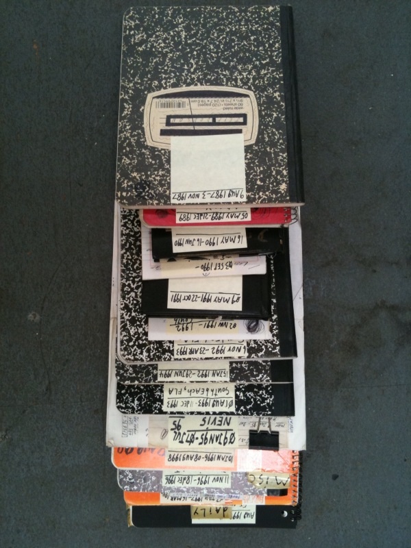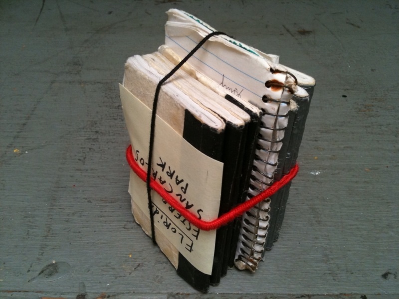 A NICE LITTLE PAD (see BOX #58) 1 DEAD CASSETTE PLAYER (see BOX #55) 2 GLASSES (BROKEN) (see BOX #55) (moved to BOX #24) ALL RECORDS GENERATED FROM THE BUYING & SELLING OF A TOWNHOUSE IN 2005 (see BOX #59) 5 PHONE LOGS, 2 COMPUTER-INK-STAINED COTTEN SWABS, AND A BUSINESS ENVELOPE (see BOX #59) SMALL PART OF 3 PARTS OF 25/13 (see BOX #21) REWINDING THE TAPE (see BOX #21) WRITERING; the02:59:01pm08jul2010; paper, graphite, tape, whipping twine, wire, binder clips (my rather failed writings so far); 8.5x11x19 inches.